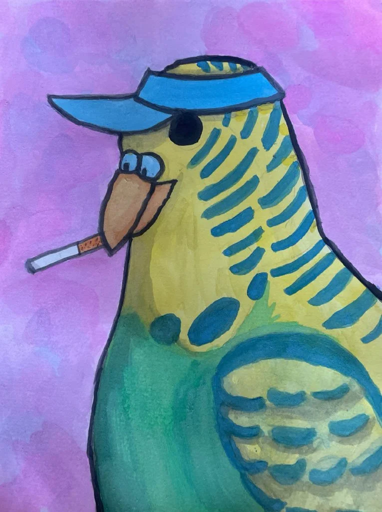 When I paint your bird, it’s going to based on you, from “what hat would they look good in?” to “do they have any light left behind their eyes?”